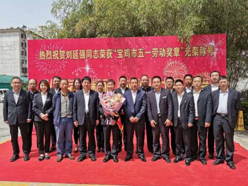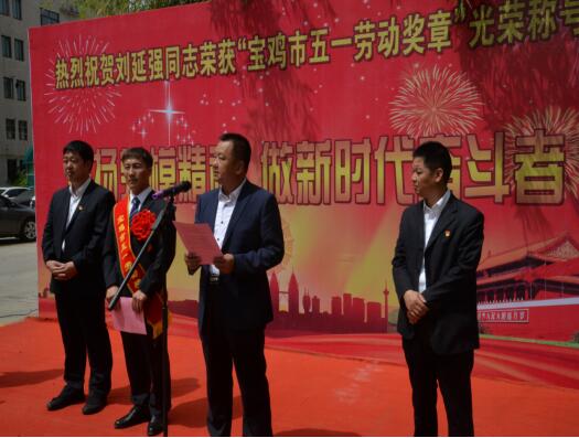 4月30日,寶雞市勞動者之歌暨慶祝“五一”國際勞動節(jié)大會勝利召開,公司劉延強(qiáng)同志被授予“寶雞市五一勞動獎?wù)隆惫鈽s稱號,公司在總部辦公樓前舉行了簡樸隆重的歡迎儀式。公司副董事長、總經(jīng)理胥立,黨委書記景旭東,工會主席王建成等出席儀式,總部全體、寶雞文化藝術(shù)中心項目部管理人員參加。