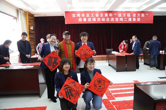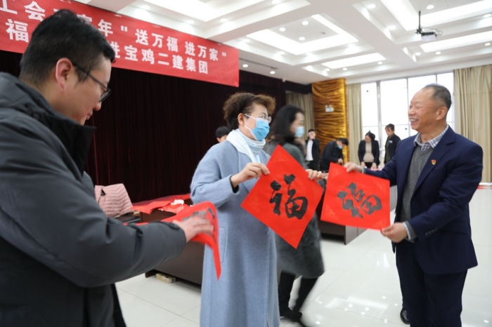 1月18日,寶雞市人大常委會副主任、總工會主席曹海芹,市職工文聯(lián)主席楊曉文、副主席郭旭及6名書法名家走進(jìn)集團(tuán)公司,開展“送萬福 進(jìn)萬家”市總工會壬寅年迎春送福活動,為員工們送來了濃濃的關(guān)愛和新春的祝福。