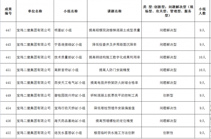 近日,從陜西省建筑業(yè)協(xié)會獲悉,在“2022年陜西省工程建設(shè)質(zhì)量管理小組競賽活動”中,集團公司17項成果從2119個成果中脫穎而出,一次性獲得一類成果9項,二類成果4項,三類成果4項。其中技術(shù)質(zhì)量部QC小組的《提高鋼結(jié)構(gòu)施工數(shù)字化成果利用率》和碧水潤園QC小組的《研制一種控制混凝土板厚的裝置》被推薦參加國家QC小組成果發(fā)布。集團公司榮獲“2022年陜西省質(zhì)量管理小組活動先進企業(yè)”稱號,并連續(xù)八年獲此殊榮。